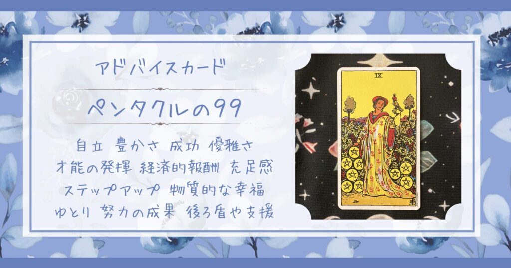 今日のカードは、ペンタクルの9。