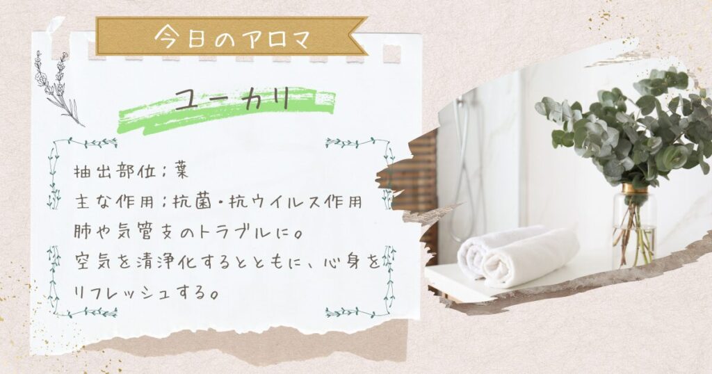 ユーカリの香りは、自然と呼吸を深めてくれます。