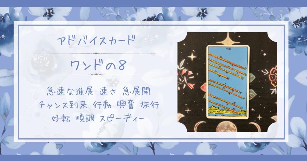 今日のアドバイスカードは、ワンドの8です。