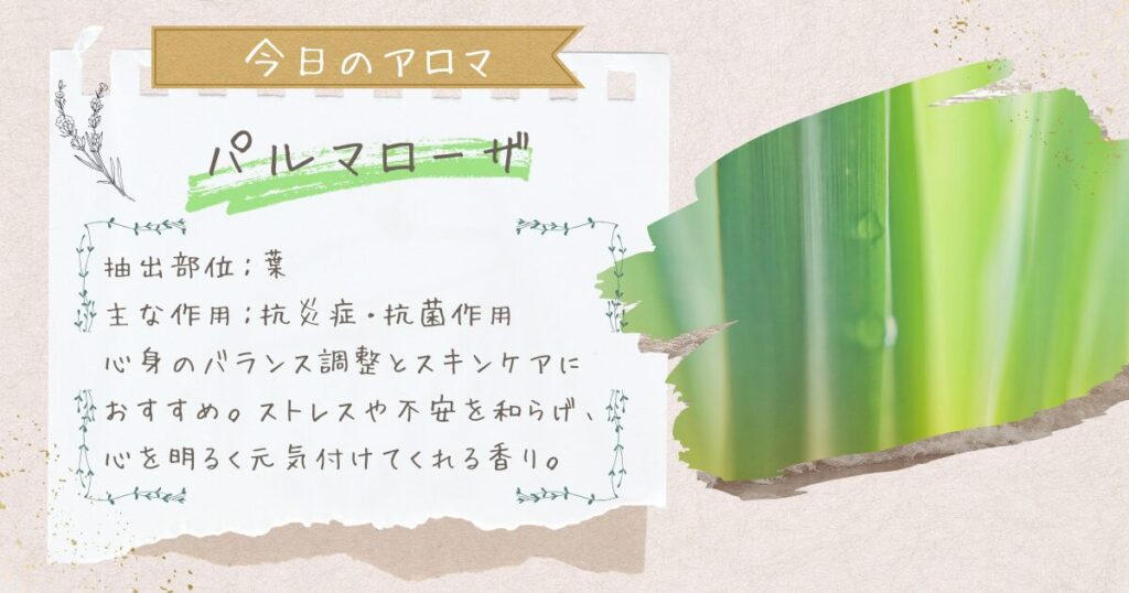 今日のおすすめアロマは、パルマローザです。