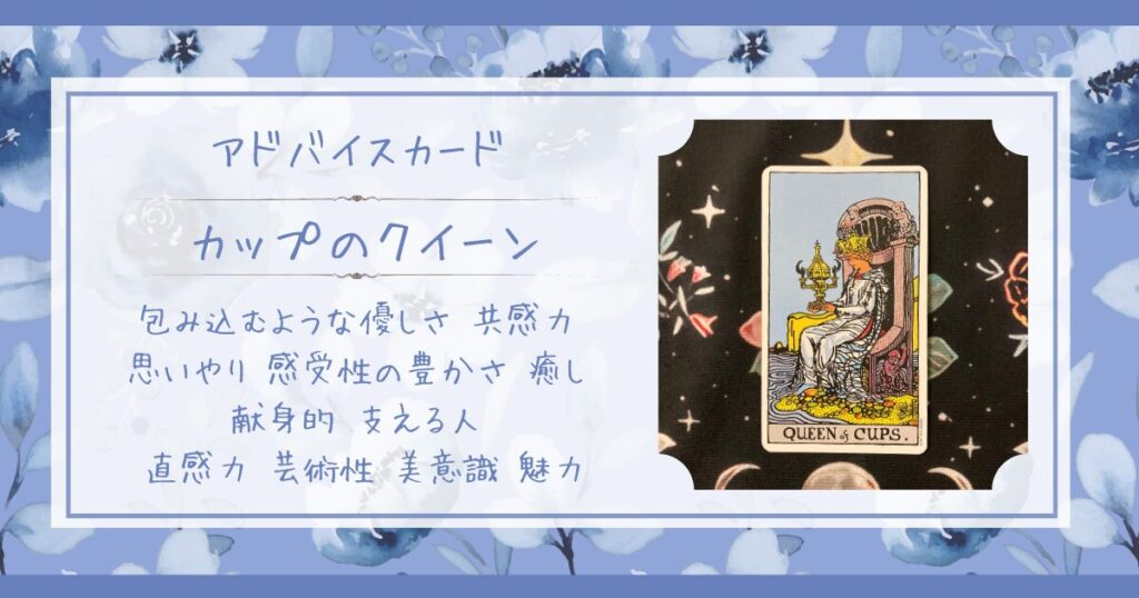 今日のアドバイスカードは、カップのクイーンです。