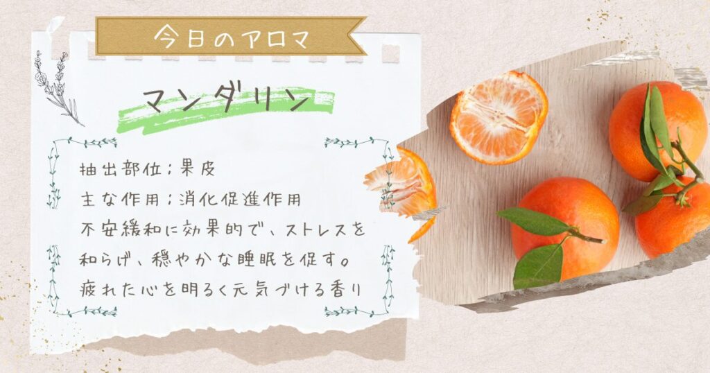 今日のおすすめアロマは、マンダリンです。