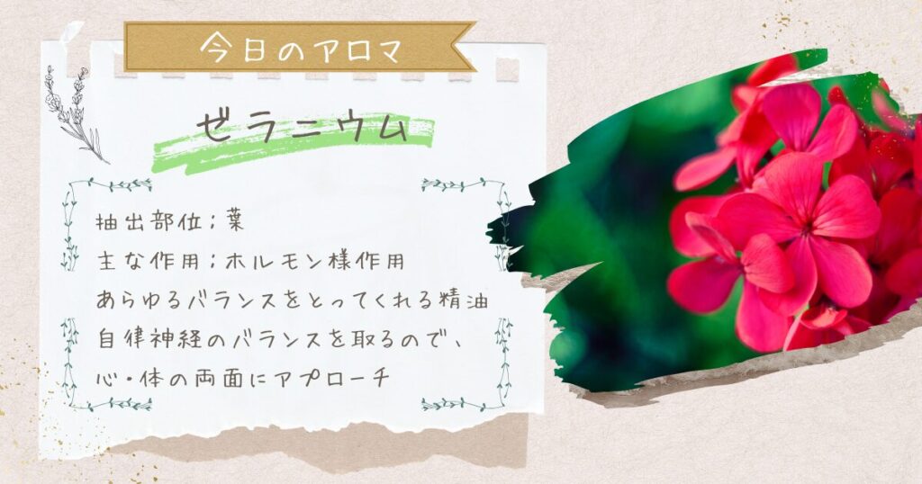 今日のおすすめアロマは、ゼラニウムです。