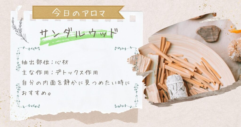 今日のおすすめアロマは サンダルウッド です。