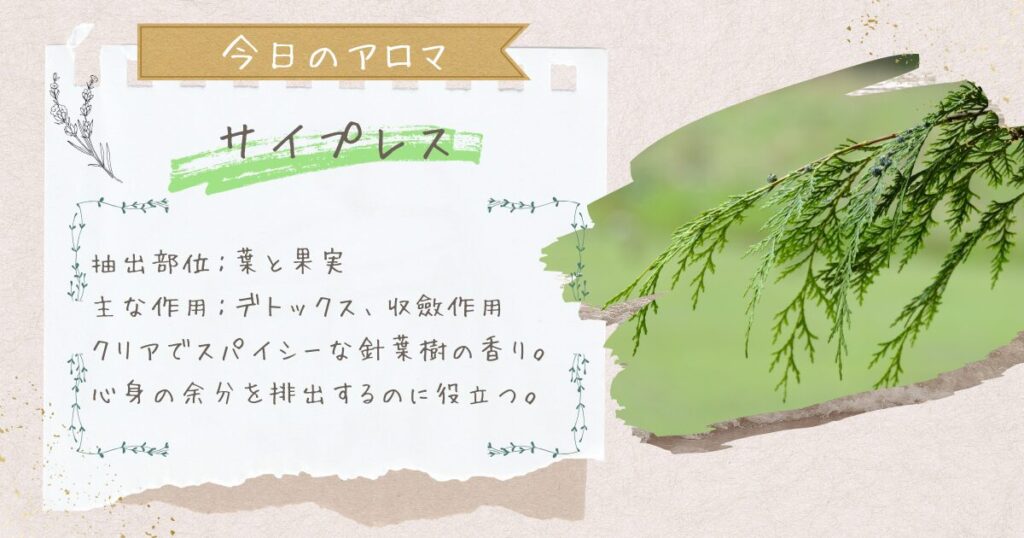今日のおすすめアロマは サイプレス です。
